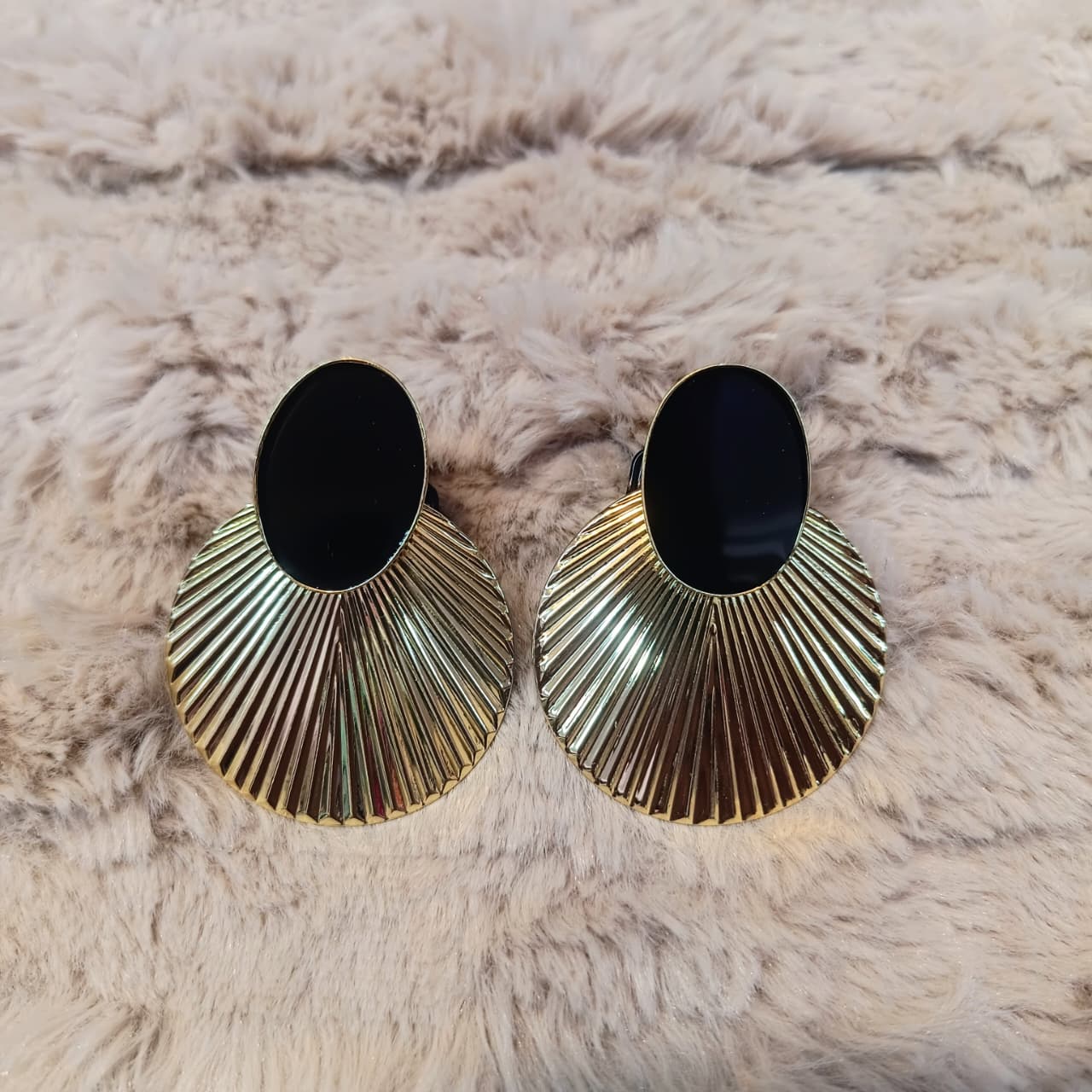 Make a striking entrance with our Black Luxe Fan Statement Earrings, crafted with a stunning black oval top paired beautifully with a radiating gold fan structure. Designed for fashion-forward women who love statement jewelry with elegance.