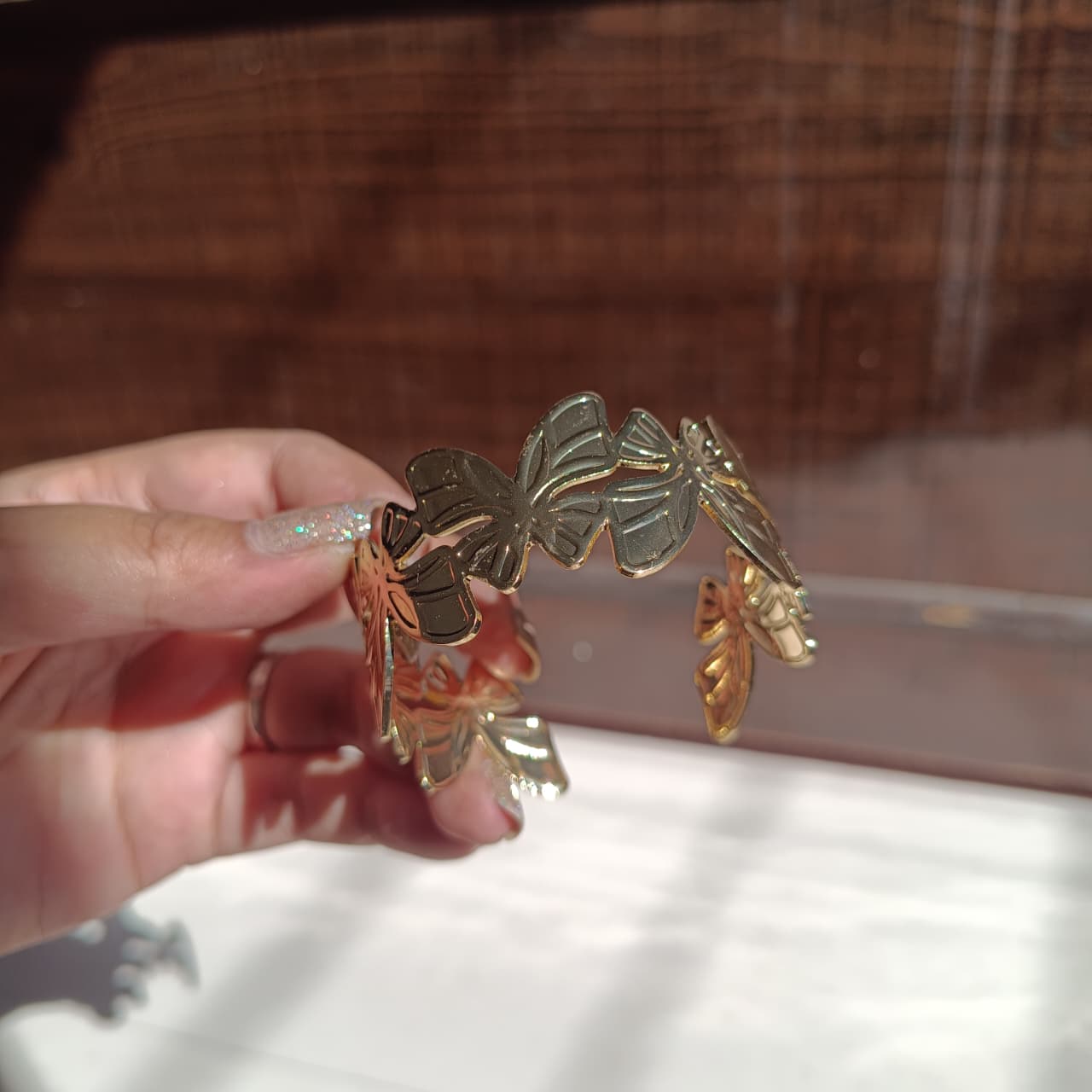 Featuring beautifully crafted butterfly designs with a sleek gold-tone finish, this bracelet gives a trendy and elegant look — perfect for parties, outings, and everyday fashion.
