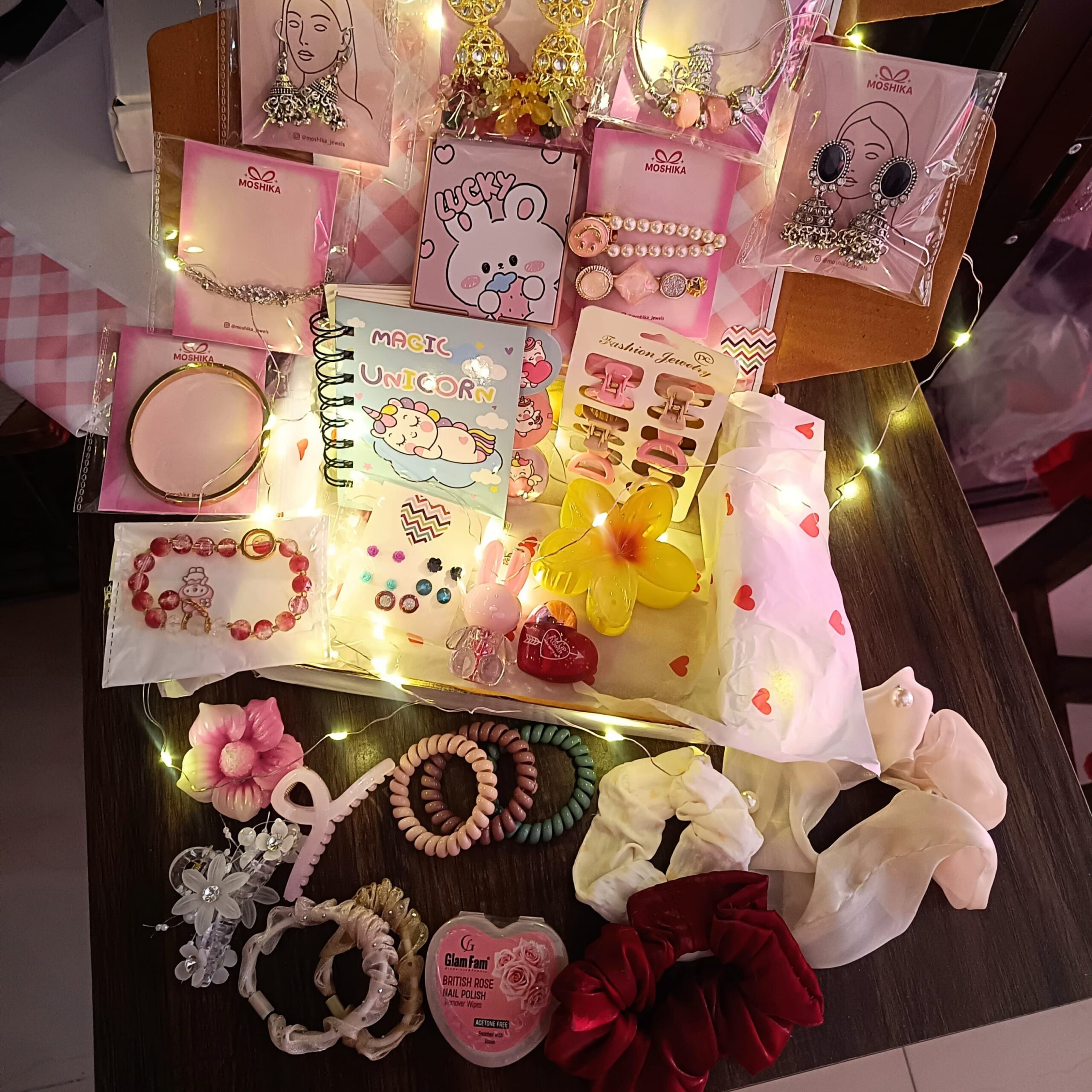 Each item has been carefully handpicked to enhance your style, keep you organized, and add a touch of sparkle to your day. Beautifully packed with love, this hamper is sure to leave a lasting impression.