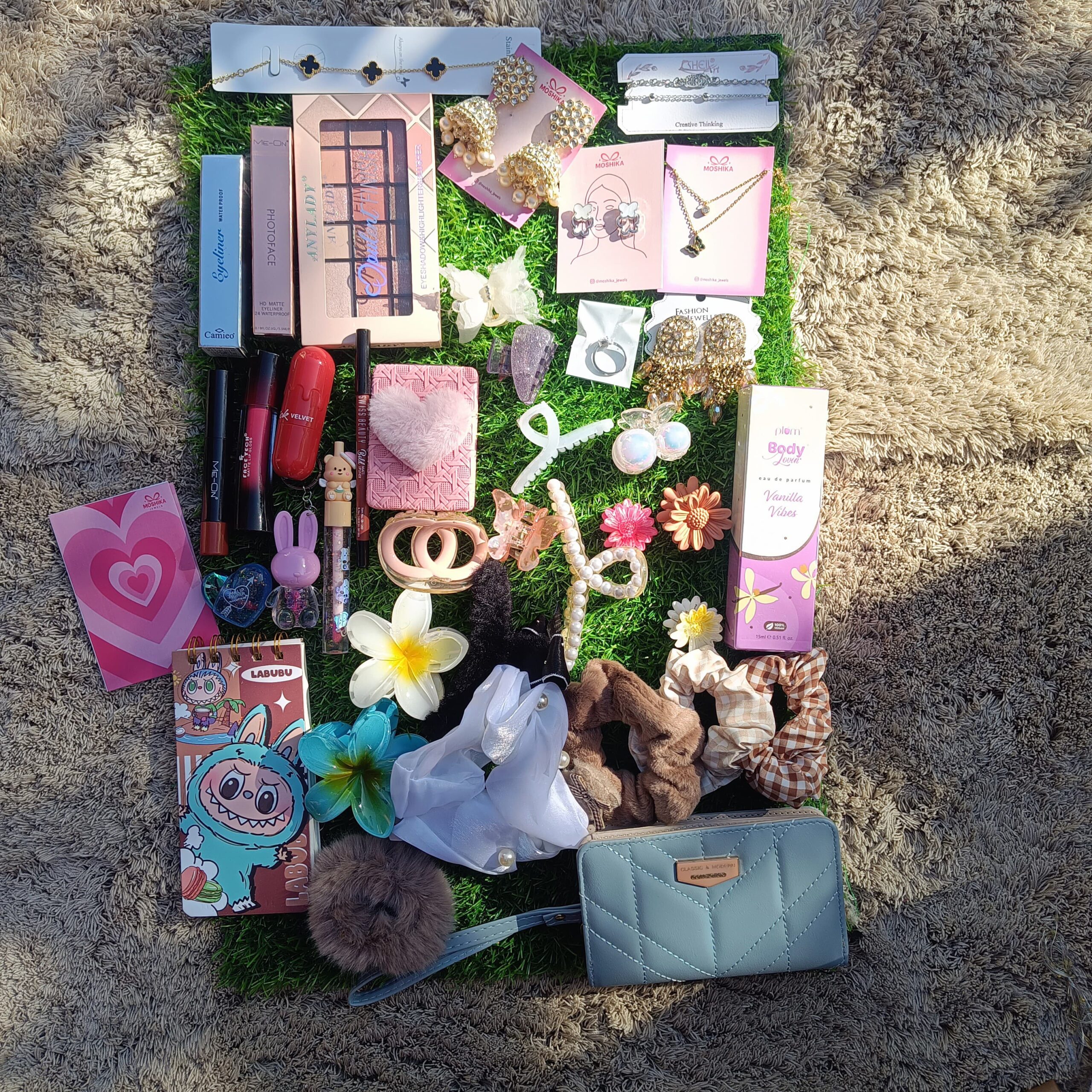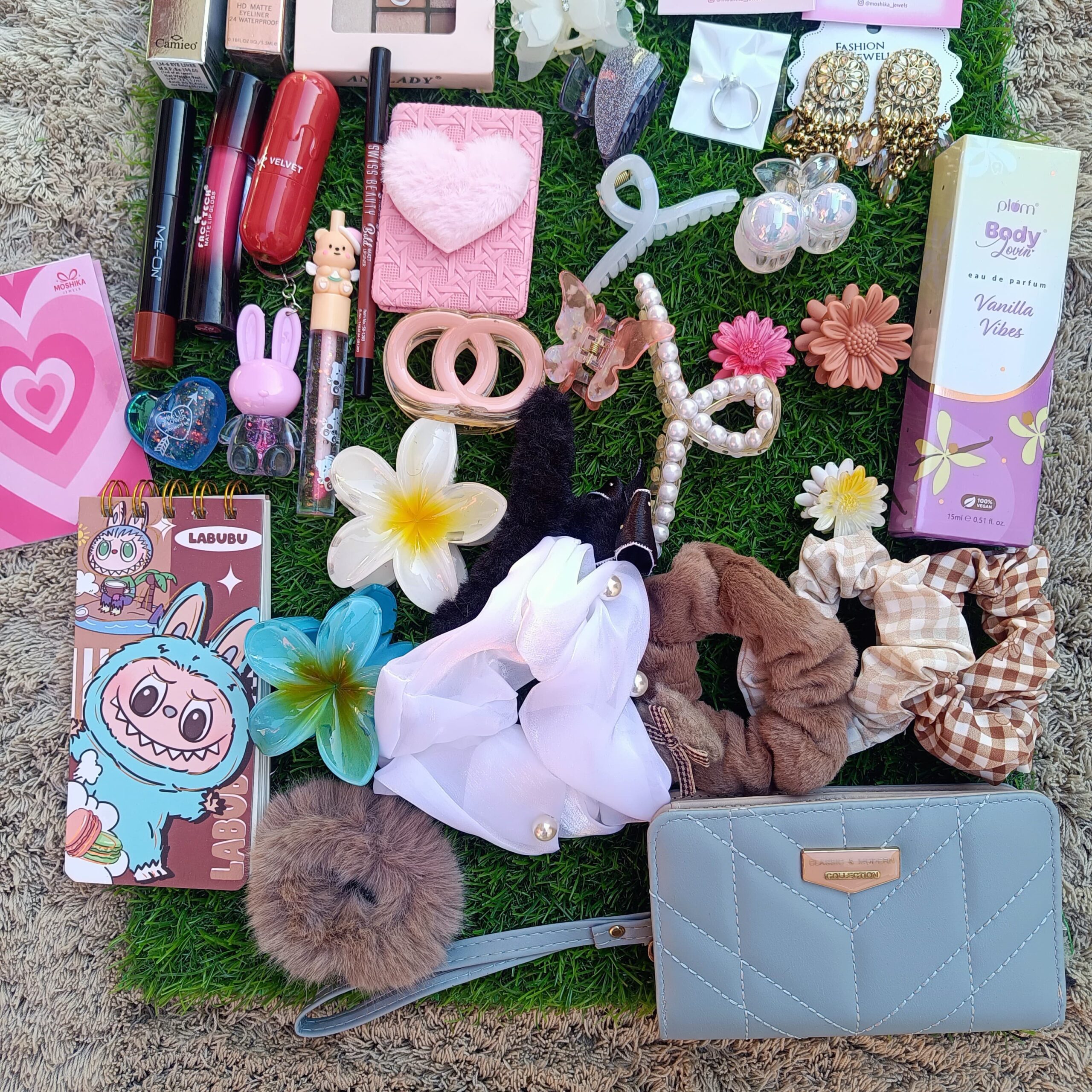 This hamper is designed for those who want more than just a gift—they want a complete experience. From high-quality makeup and perfume to trendy jewellery, scrunchies, and lifestyle accessories, every item ensures value and style. Perfect for birthdays, anniversaries, or surprise celebrations.