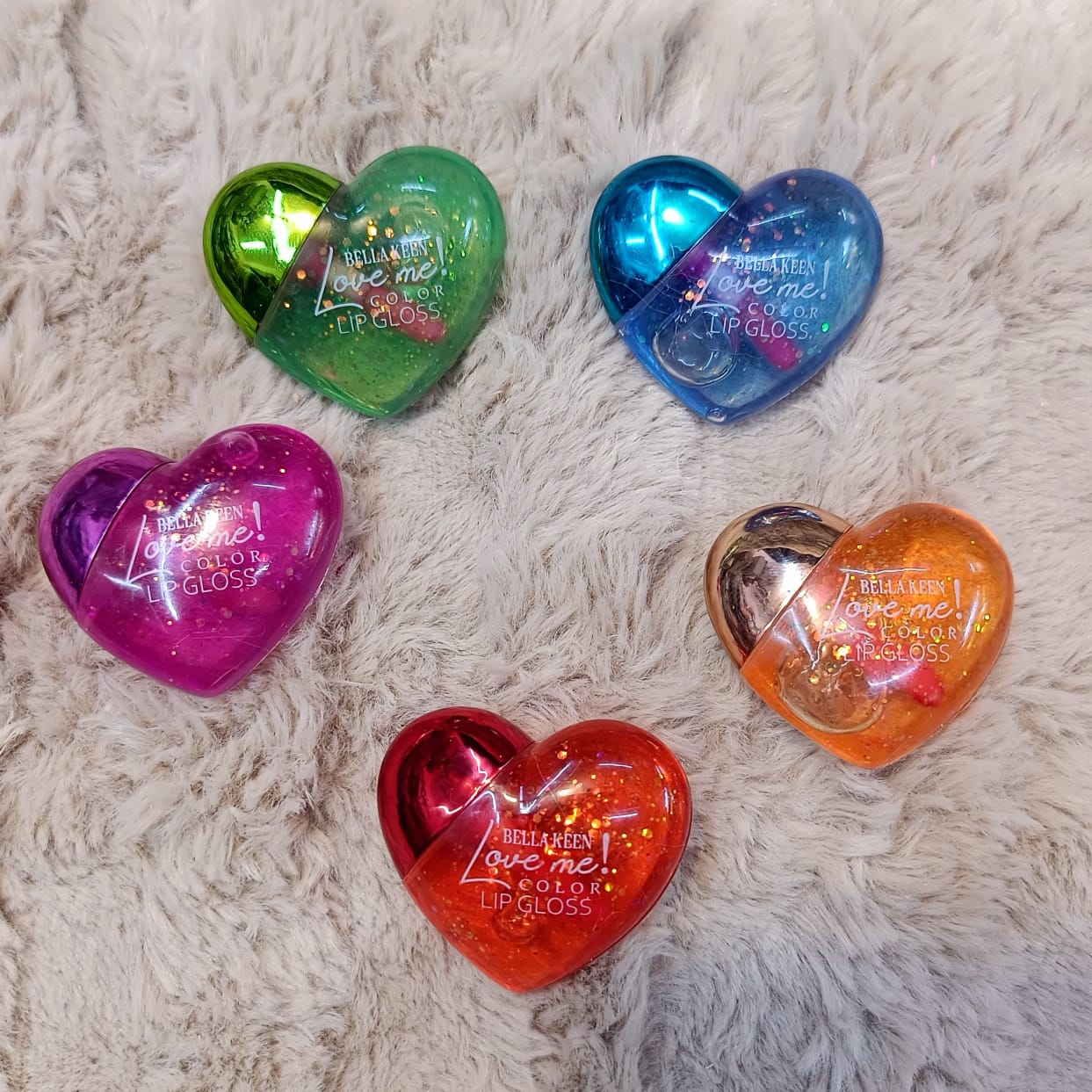 This adorable heart-shaped gloss comes with a light glitter shine and subtle glossy tint, perfect for everyday use, college looks and makeup hampers.