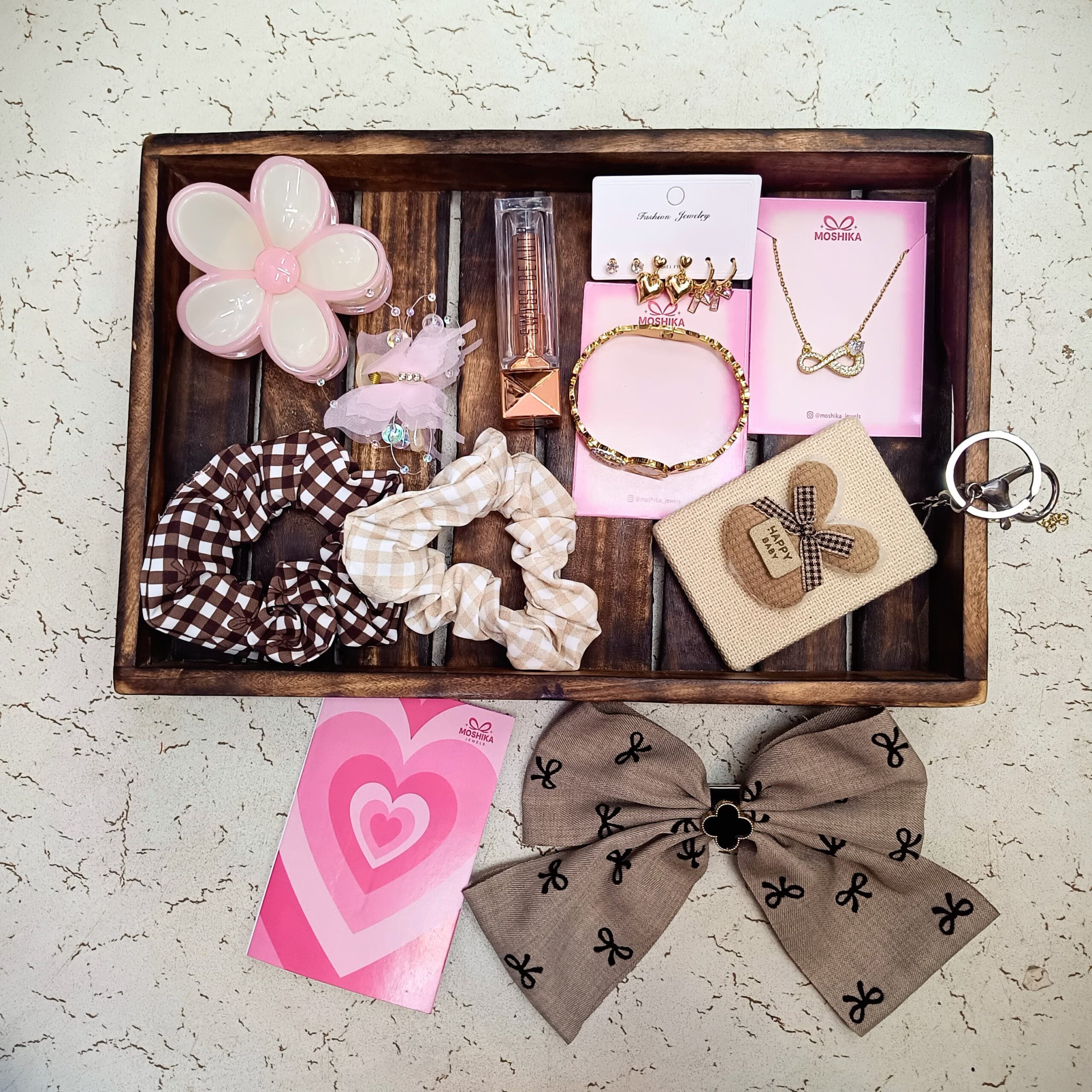 Add a touch of elegance and glamour to your style with the Premium Jewelry & Beauty Hamper. This beautifully curated set brings together timeless jewelry, classy hair accessories, and a beauty essential to complete your look. Each piece is selected to offer lasting shine, modern style, and a premium experience—making it an ideal choice for gifting or personal use.