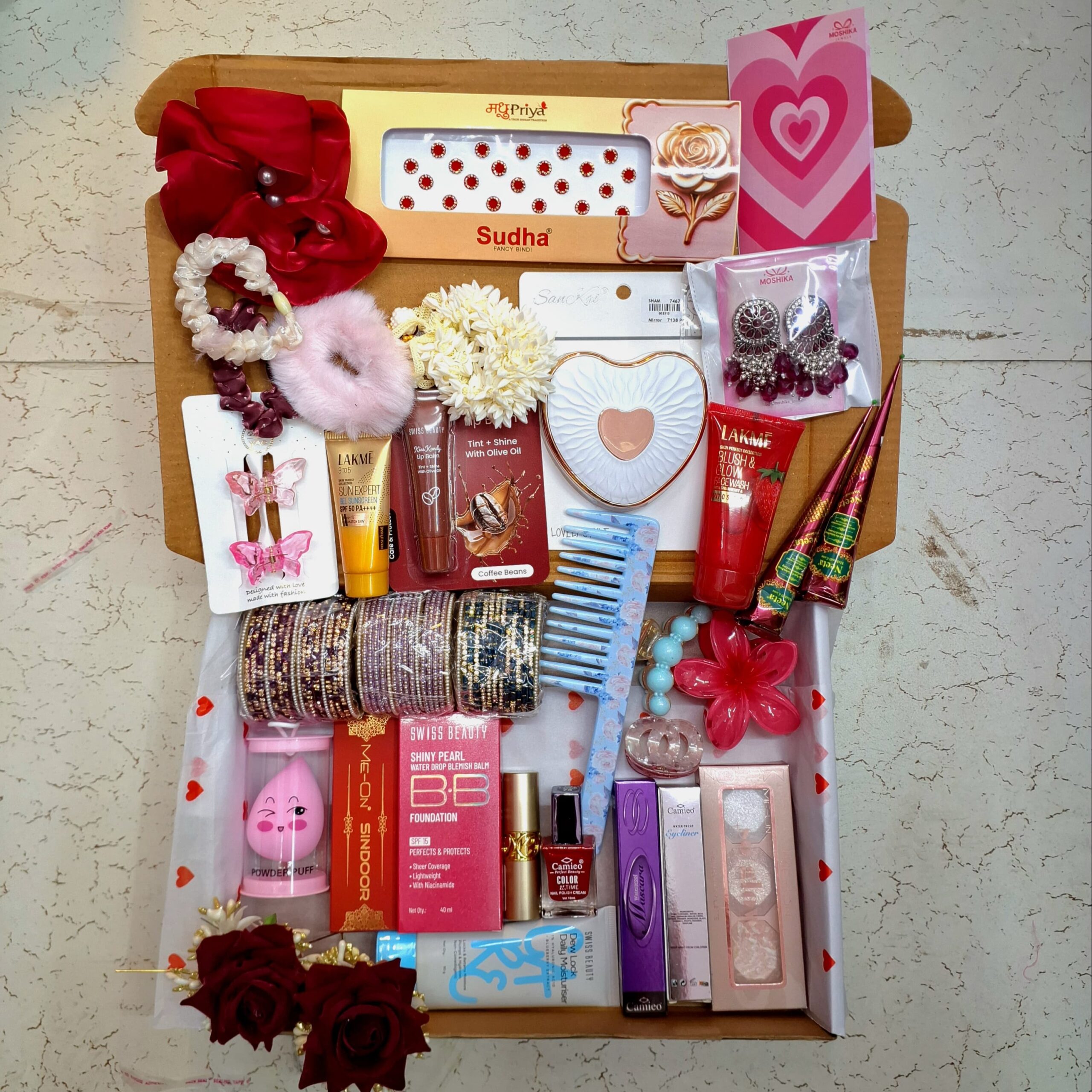 Make Karwa Chauth unforgettable with The Shringar Treasure Box – a luxurious collection of beauty, self-care, and traditional essentials. This hamper blends elegance with festivity, making it an ideal gift for your loved one to pamper herself and look radiant on this special day.