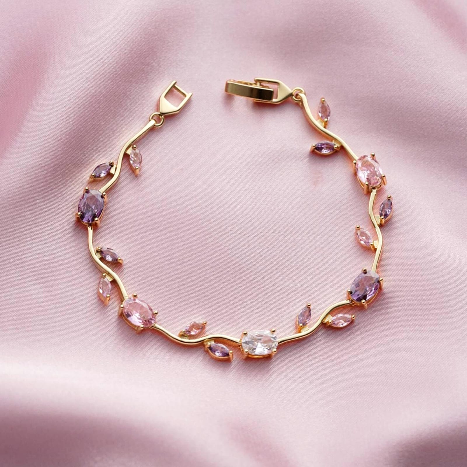 - Material: Premium gold-toned alloy with high-clarity pink crystals.